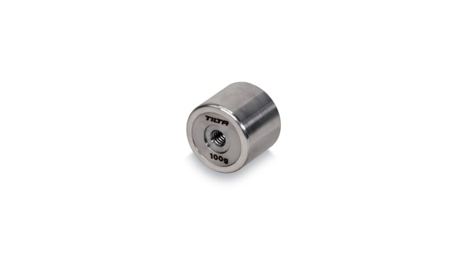 Este contrapeso de 100 g se puede utilizar junto con la abrazadera de contrapeso del brazo lateral y/o el adaptador de contrapeso para la placa base de fijación rápida, con el fin de añadir peso adicional cuando sea necesario para equilibrar el conjunto de la cámara en el gimbal.