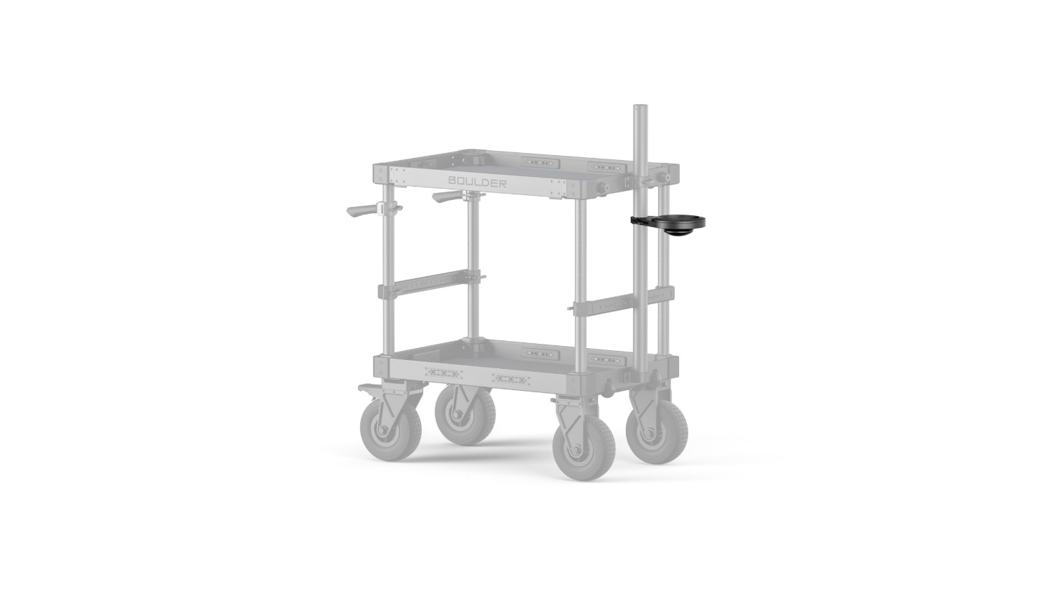 Presentamos el kit de adaptador para rótula con cabezal fluido de 150 mm para el carro Boulder Camera Cart. Esta rótula con cabezal fluido se fija mediante una abrazadera al acoplamiento Steadicam Dock del carro Boulder Camera Cart. Esto permite a los usuarios acoplar su rótula de 150 mm.