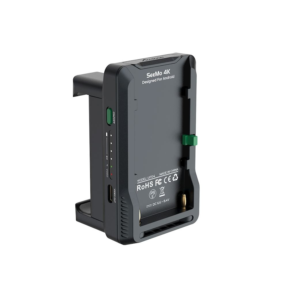 Una sola batería NP-F es capaz de alimentar el SeeMo 4K para Android y, al mismo tiempo, puede utilizarse para alimentar un teléfono o una tableta conectados.