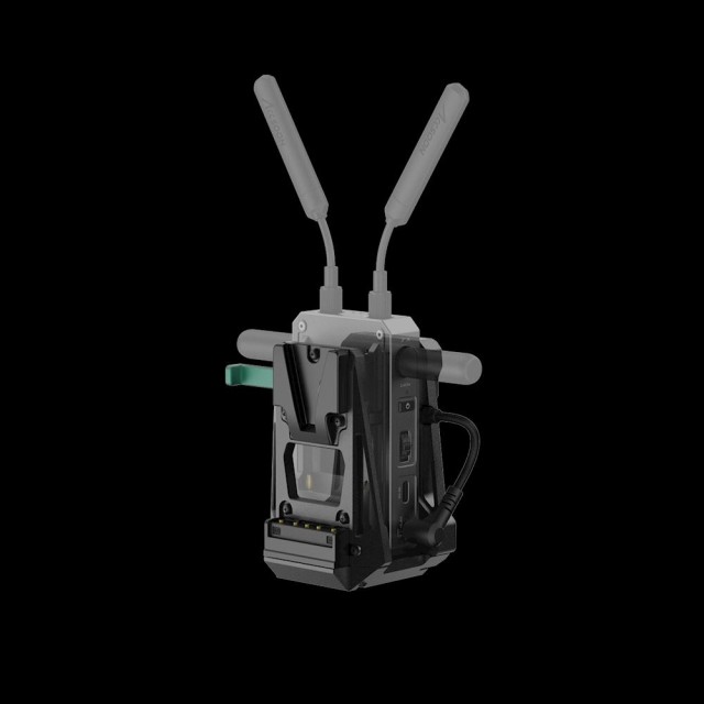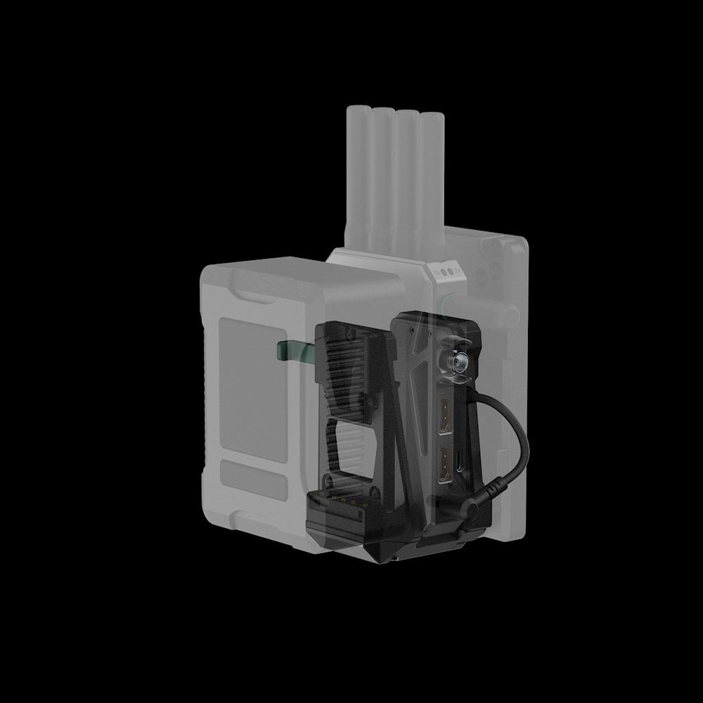 Una vez instalado, el adaptador sujeta de forma segura el transmisor CineView y suministra alimentación a través de un cable DC corto, mientras que la alimentación de la batería V-mount se transmite a la cámara. Este diseño integrado mejora la ergonomía, el equilibrio y el manejo del rig, lo que lo hace ideal para cámaras ENG, cámaras sin espejo con placas adaptadoras V-lock y sistemas de cámara profesionales que ya están equipados con placas V-mount.
