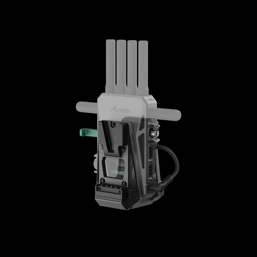 El adaptador Accsoon ACC-ACC32 V-Lock es una solución inteligente de alimentación y fijación diseñada para cineastas profesionales y operadores de televisión que utilizan los transmisores de vídeo inalámbricos CineView Master 4K o CineView 2 SDI. Esta base, de precio asequible, se fija de forma segura mediante una interfaz V-lock estándar y permite alimentar tanto la cámara como el transmisor inalámbrico simultáneamente desde una sola batería con montura V-mount.