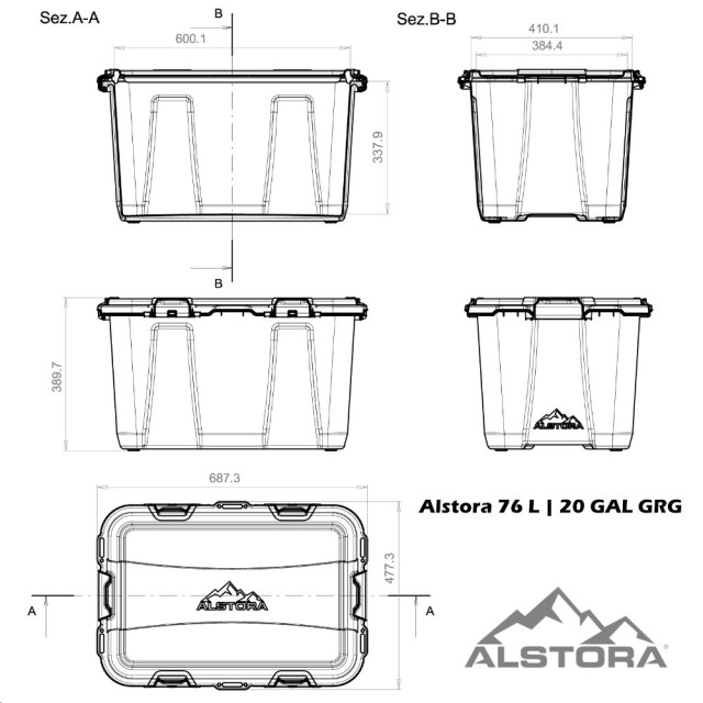 Alstora 76 L | 20 GAL GRG container 76L Grey color