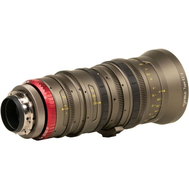 ¡El EZ-3 es el nuevo teleobjetivo de la gama de ópticas cinematográficas profesionales Angenieux EZ! Al igual que los modelos EZ-1 y EZ-2, ofrece unas dimensiones compactas, una excelente nitidez, marcas de enfoque duales y, sobre todo, la tecnología «IRO Technology» (Interchangeable Rear Optics), que permite cambiar la parte trasera del sistema óptico y convertir así el objetivo para cámaras S35 o FF/VV. El cambio en sí es muy sencillo gracias al diseño innovador del elemento trasero y dura unos 5 minutos. El kit EZ-3 Pack incluye ambos elementos traseros (S35 y FF/VV) para los parámetros ópticos de 45-165 mm T/2,3-3 (S35) y 68-250 mm T/3,5-4,5 (FF/VV), respectivamente. De serie, el objetivo se suministra con una montura PL (intercambiable); también hay disponibles monturas intercambiables opcionales EF, RF y E. A la venta a partir de noviembre de 2023.