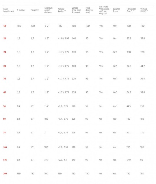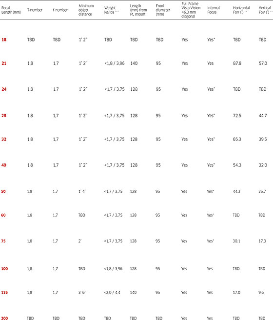 Los objetivos cinematográficos de referencia Angenieux Optimo Prime están disponibles en el conjunto Silver Set, compuesto por 6 modelos: 18 mm T2.0, 28 mm T1.8, 40 mm T1.8, 50 mm T1.8, 75 mm T1.8 y 135 mm T1.8. Los envíos se gestionan según el orden de recepción de los pedidos anticipados (con un anticipo del 5 %). Se suministran de serie con montura PL o LPL.