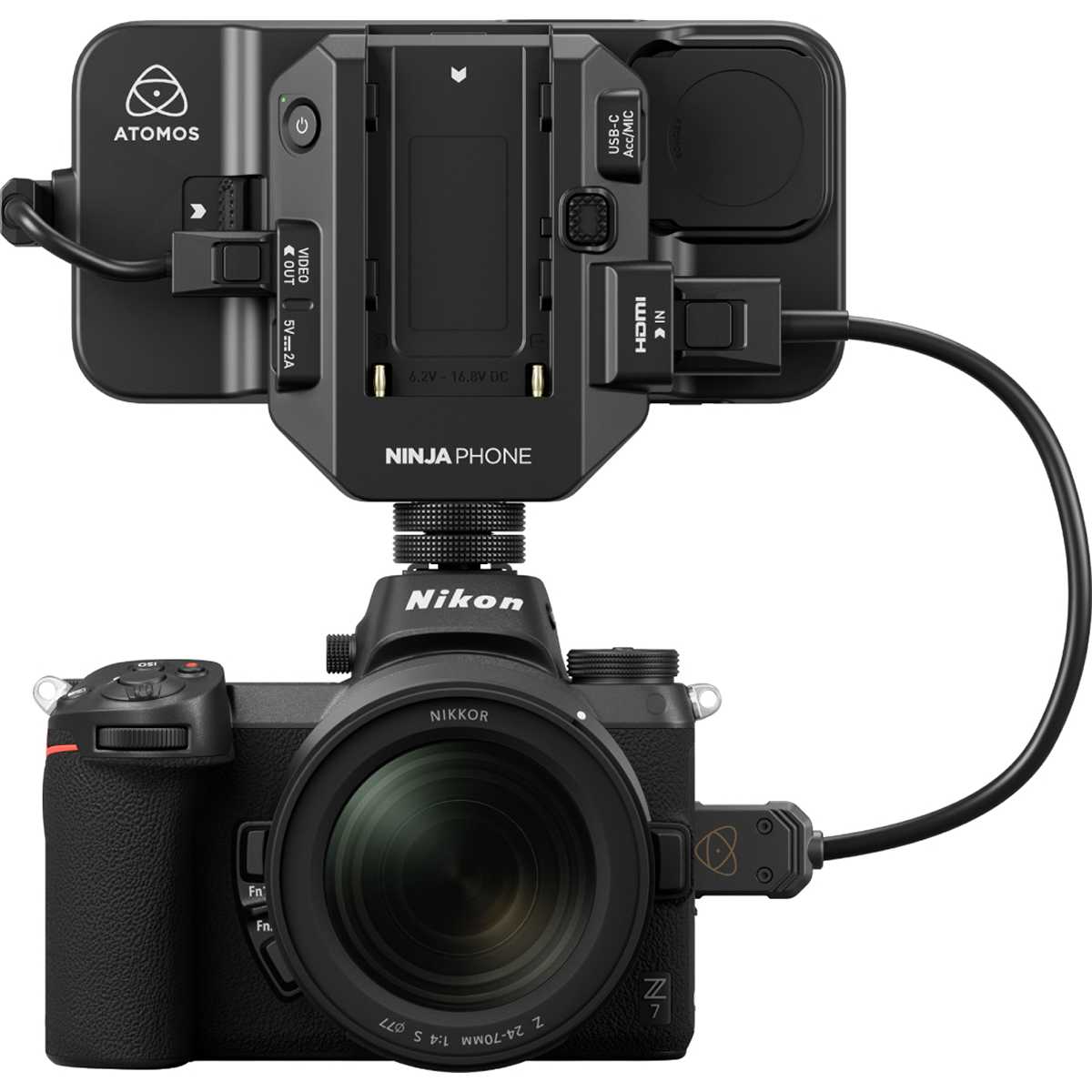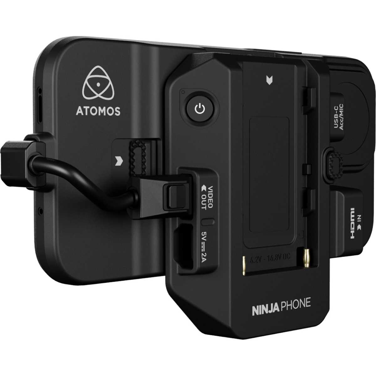| Compatibilidad con baterías | NP-F550 / F750 / F970: una vez conectado, el Ninja Phone carga el teléfono y los accesorios 2,4 W (sin cargar el iPhone) 4 W (con iPhone 15 Pro) |