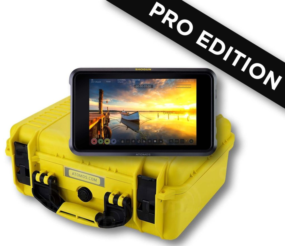 El paquete Pro Edition incluye el convertidor AtomX Connect 2, una carcasa rígida HPRC, una estación de acoplamiento USB 3.0, 5 soportes Master Caddy, una fuente de alimentación, un cargador rápido, 2 baterías NP-F750 (5200 mAh) y un parasol, lo que lo convierte en una solución profesional completa y lista para usar.