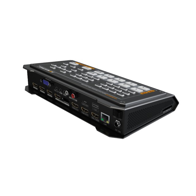 Conmutador de vídeo compacto de 4 canales 1 entrada DisplayPort y 4 entradas HDMI 1 salida HDMI Multiview y 2 salidas HDMI PGM Transmisión RTMP a través del puerto LAN RJ45 1 salida USB-A y 1 salida USB-C Compatible con entradas/salidas de vídeo de hasta 1080p60 Transiciones T-Bar, automáticas…