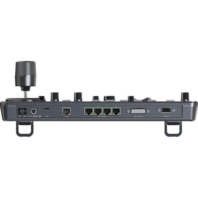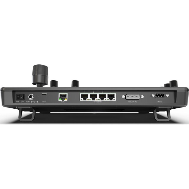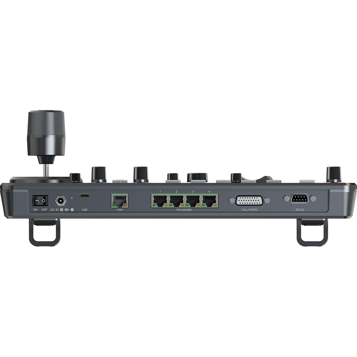 Este controlador, con pantalla táctil de 5", joystick 4D y compatibilidad con los protocolos Visca, Pelco P&D, ONVIF e IP, es capaz de gestionar hasta 100 cámaras PTZ con decodificación de vídeo en tiempo real. Permite controlar fácilmente la exposición, la apertura, el enfoque y el movimiento. Se alimenta a través de PoE o 12 V CC y es ideal para estudios, retransmisiones en directo y entornos de emisión. Versión NDI.