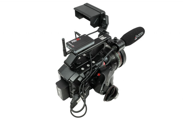 Conecta un micrófono Azden o un receptor inalámbrico a la entrada de audio profesional