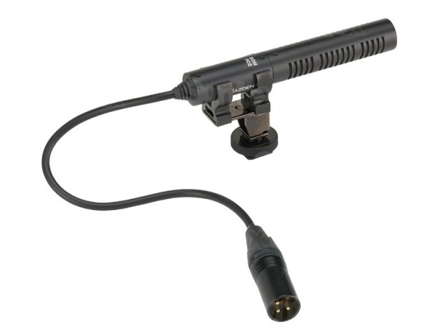El Azden SGM-PDII es un micrófono de cañón profesional de tamaño reducido (150 cm) con un cable de 33 cm y un conector XLR. Se alimenta únicamente mediante alimentación fantasma (11-52 VCC).