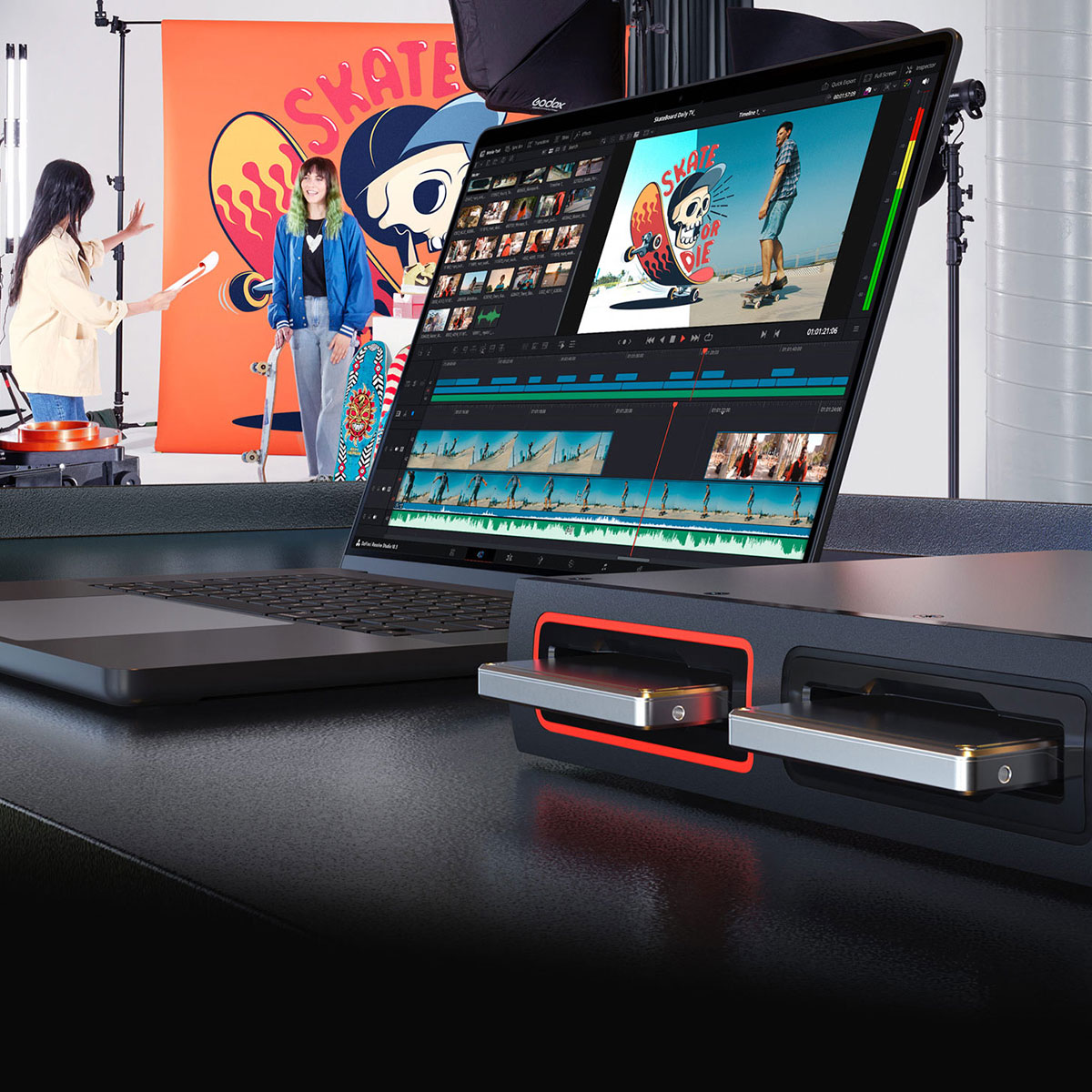 Se avecinan dos novedades en el ámbito del almacenamiento en red: Blackmagic Cloud Dock 2 y Cloud Dock 4. Estos nuevos modelos, presentados por primera vez el año pasado en la feria NAB, permiten compartir 2 o 4 discos SSD independientes de 2,5" (U.2/SATA) en red y ofrecen 2 o 4 puertos Ethernet de 10 G (RJ-45), una salida HDMI para supervisar el estado del almacenamiento, así como la sincronización y el uso compartido de datos a través de los servicios Dropbox y Google Drive. Las novedades requieren la instalación de los controladores Blackmagic Cloud Store 1.1.8 o posteriores (Windows 10+/macOS 12+), son compatibles con Ethernet a través de USB-C, los sistemas de archivos ExFAT y HFS+, y el intercambio en caliente de discos; se pueden instalar en un rack de 19" (1U; el Cloud Dock 4 directamente, el Cloud Dock 2 mediante un adaptador).