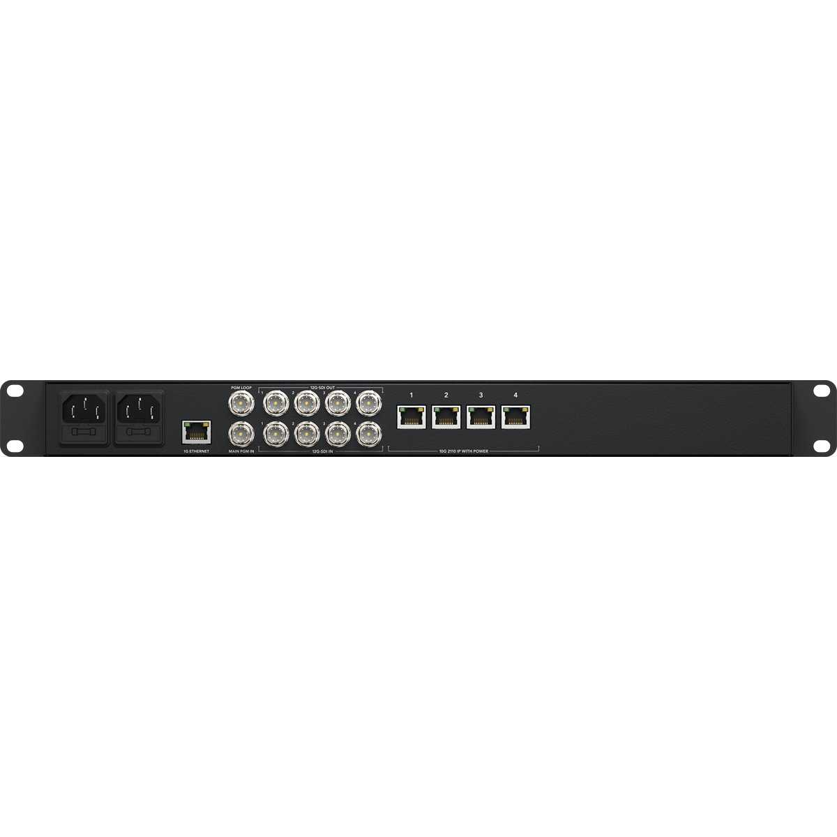 Convierte y alimenta hasta 4 cámaras IP 2110 o convertidores. El convertidor IP 2110 bidireccional de 4 canales y 12G-SDI incluye un panel de control con pantalla LCD y es compatible con los estándares HD y Ultra HD hasta 2160p60. Disponible a partir de mayo de 2024.