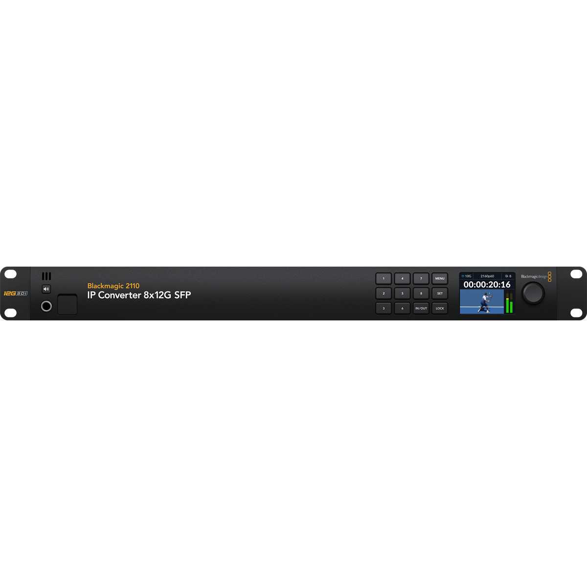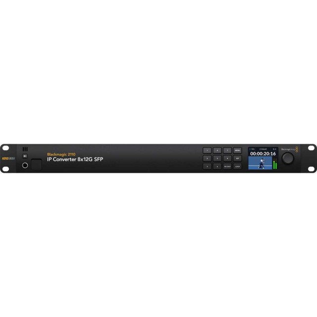 El Blackmagic Design 2110 IP Converter 8x12G SFP permite convertir sin problemas 3 dispositivos independientes 3G-SDI a sistemas de vídeo IP SMPTE 2110. Este convertidor está equipado con una conexión Ethernet de 10G y admite 3 canales de vídeo de entrada y 3 de salida simultáneamente. Cada canal cuenta con entradas y salidas SDI independientes, lo que permite conectar hasta 6 dispositivos SDI diferentes. Gracias a las salidas en bucle para cada entrada 3G-SDI, se integra fácilmente en las configuraciones SDI existentes. Está equipado con una salida de referencia sincronizada con el reloj PTP 2110 e incluye un panel frontal con pantalla LCD a color para monitorización, menús y diagnóstico.