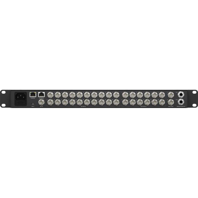 Los controladores ATEM Constellation se caracterizan por su diseño compacto con un panel de control integrado para montaje en rack. El panel permite controlar el controlador, por ejemplo, para ajustes básicos o para uso de emergencia. También incluye una gran pantalla LCD, de modo que los usuarios pueden ver la salida y cambiar la configuración del controlador a través de los menús en pantalla. Su diseño compacto es ideal para la producción móvil en directo. La serie ATEM Constellation cuenta con un gran número de salidas SDI totalmente independientes, por ejemplo, para crear canales independientes hacia pantallas de escenario, grabadoras de estudio y procesadores de streaming. Las salidas SDI también se pueden utilizar para grabadoras ISO, donde cada grabadora recibe la entrada resincronizada de la mesa de mezcla con el código de tiempo correspondiente. Todas las salidas SDI incluyen audio, código de tiempo RP-188, control de cámara, comandos de señalización y talkback. Para la retransmisión en directo, también se puede utilizar la interfaz USB-C en modo cámara web. Esto garantiza una compatibilidad total con cualquier software de vídeo en resolución Full HD 1080.