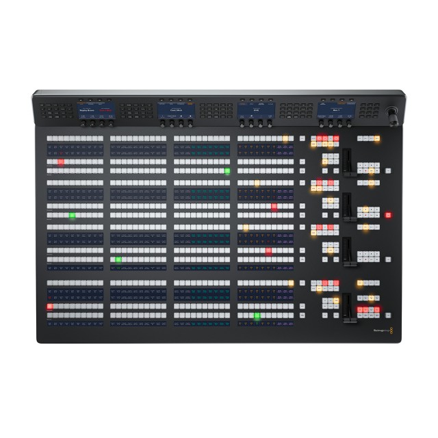 ¡La variante más grande, de 4 M/E, complementa a la perfección el conjunto funcional de la sala de control ATEM Constellation! Ofrece cuatro filas de M/E con 40 botones para entradas y 4 pantallas LCD para configurar funciones, así como pantallas para crear etiquetas en todos los botones.