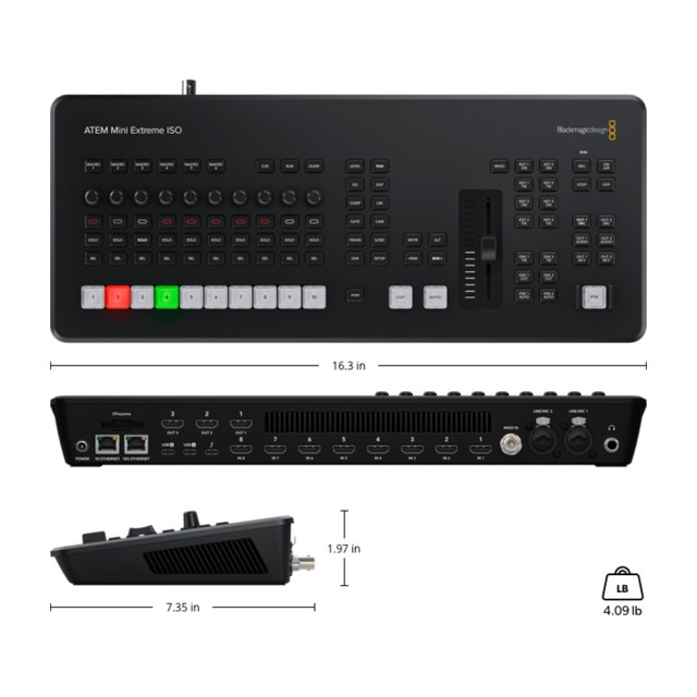 El ATEM Mini Extreme ISO G2esel mezcladorideal para montarun estudio de retransmisión de alta calidadcon 8 entradas HDMI, motor de streaming integrado,multivisión, Thunderboltpara grabación y reproducción,cámara web USB,DVE,croma,reproductor multimediaygrabación ISO de las 8 entradas de vídeo.Cuenta con3 salidas de vídeo independientes que se pueden redirigir.