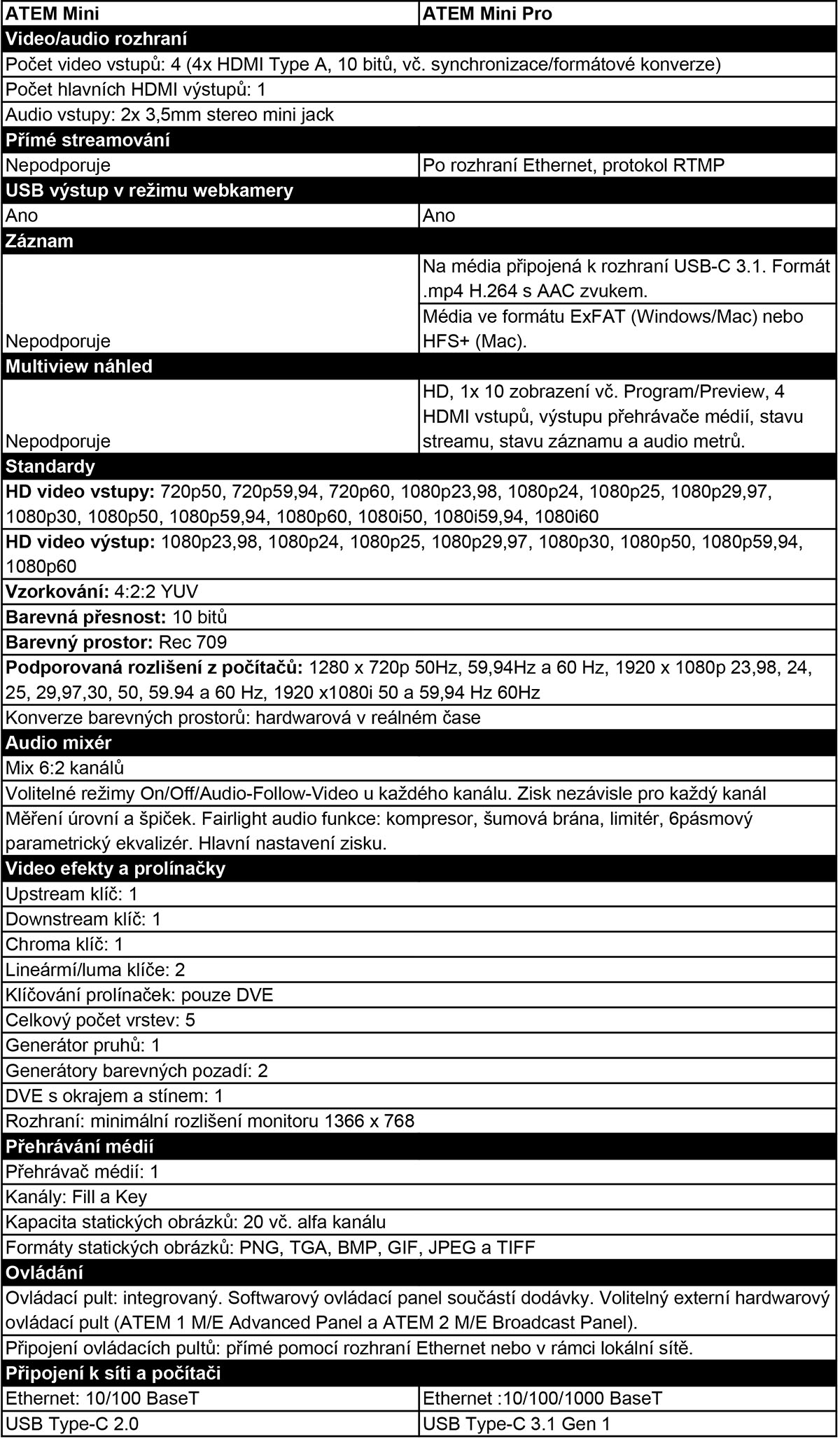 Los sistemas de control ATEM Mini permiten crear fácilmente presentaciones corporativas profesionales a través de servicios como Skype o Zoom, o programas en directo, por ejemplo, para la plataforma YouTube, utilizando hasta cuatro entradas de cámara, dos entradas estéreo de micrófono/línea, o la posibilidad de integrar en el programa la salida de una consola de videojuegos o un ordenador, como por ejemplo una presentación de PowerPoint. Las funciones de efectos integradas permiten crear efectos de fundido o tomas de tipo «imagen en imagen», por ejemplo, para la creación de vídeos con comentarios en directo. Todos los modelos de la serie ATEM Mini cuentan con una interfaz USB que funciona en modo cámara web para la salida de la emisión en streaming y una salida HDMI adecuada, por ejemplo, para la proyección mediante televisores y proyectores. El modelo ATEM Mini Pro permite utilizar la interfaz USB también para grabar en discos USB. Las entradas de micrófono permiten conectar micrófonos para grabar entrevistas y comentarios de presentaciones.