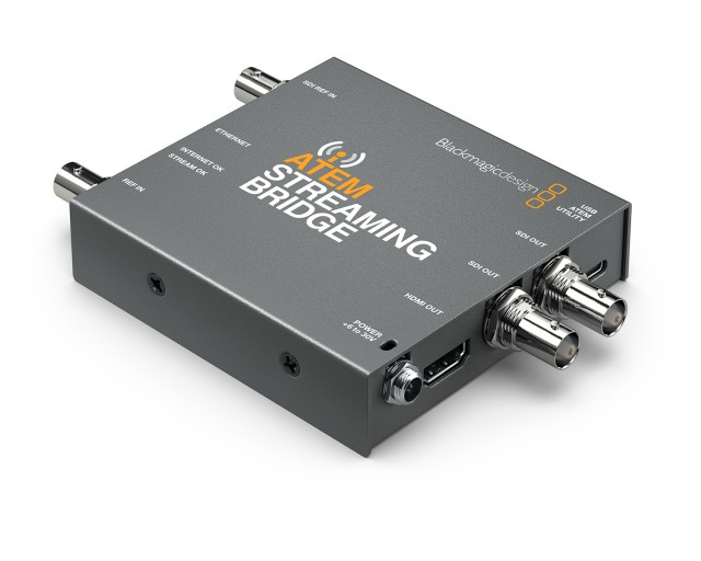 El ATEM Streaming Bridge es un convertidor especializado de transmisiones de vídeo H.264 desde las consolas ATEM Mini Pro a interfaces SDI y HDMI. Esto facilita la transmisión de vídeo dentro de redes locales o a nivel global a través de Internet. El códec de vídeo H.264 utilizado garantiza una alta calidad de imagen con un bajo ancho de banda. ATEM Streaming Bridge permite, por tanto, crear una red ramificada de estudios equipados con consolas ATEM Mini Pro y colaborar así, por ejemplo, con blogueros u organizaciones de noticias locales. El software ATEM se encarga de crear un archivo de configuración que los usuarios pueden enviar por correo electrónico a los distintos estudios con consolas ATEM Mini Pro.