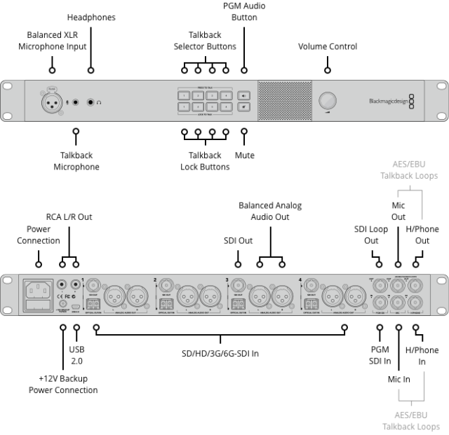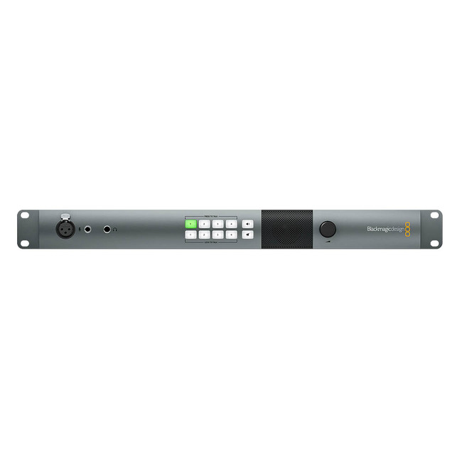 Gracias a las nuevas funcionesde comunicación, el modelo ATEM Studio Converter 2 es más fácil de usar en situaciones en las que se utilizan varias cámaras para la transmisión. El panel frontal del nuevo modelo cuenta con un altavoz integrado y una entrada de micrófono conectada a un conector XLR. De este modo, la sala de control puede supervisar la comunicación directamente desde el panel frontal, sin necesidad de utilizar auriculares, algo que era imprescindible en la versión anterior del dispositivo. El panel frontal también cuenta con un botón para silenciar el altavoz y un control giratorio de volumen; además, la entrada de micrófono frontal permite utilizar micrófonos con un flexible «cuello de cisne».