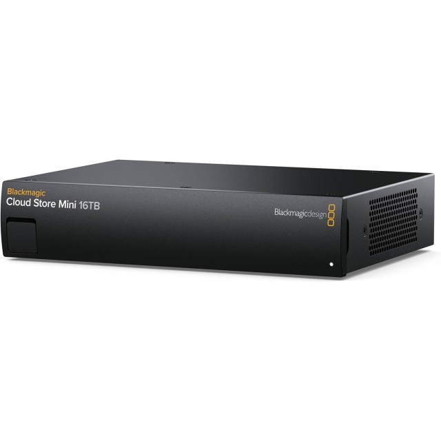 El modelo Blackmagic Cloud Store Mini está disponible en versiones de 8 y 16 TB de memoria flash, lo que proporciona suficiente espacio de almacenamiento para los formatos de vídeo modernos utilizados en la producción televisiva, manteniendo unas dimensiones reducidas. Los soportes de memoria flash M.2 garantizan fiabilidad, alta velocidad de lectura y escritura, y un tiempo de acceso mínimo. La potente electrónica interna y las tarjetas flash organizadas en una matriz RAID 0 garantizan un aprovechamiento óptimo de la interfaz Ethernet de 10 G para alcanzar las velocidades de transferencia máximas necesarias en el procesamiento de material procedente de cámaras de cine digitales o en producciones multicámara. A pesar de su alto rendimiento, el sistema de refrigeración activa sigue siendo muy silencioso.