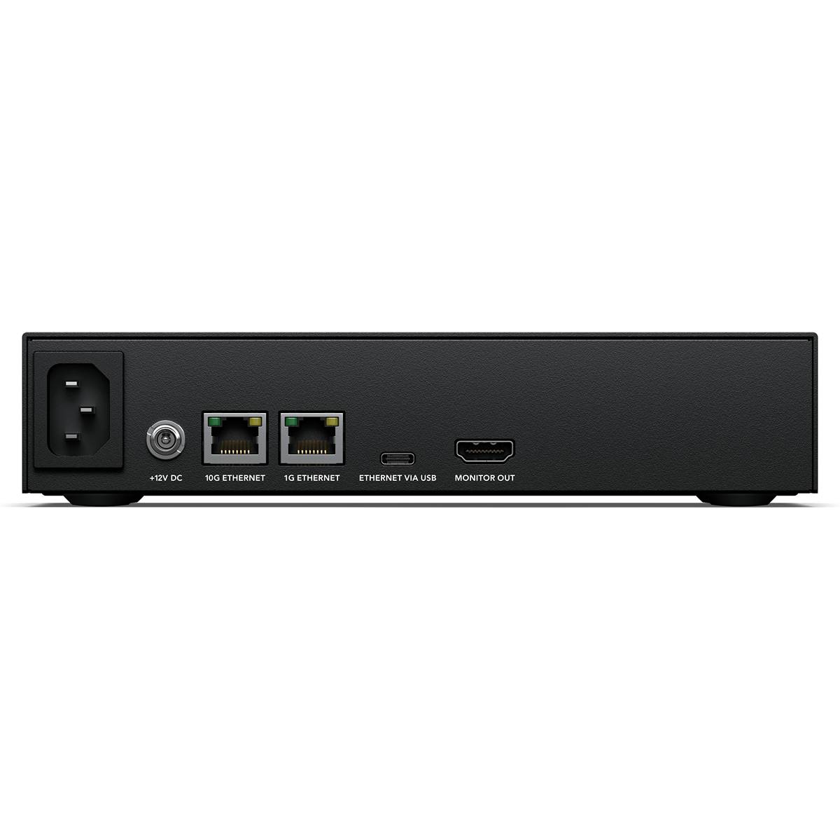 El Blackmagic Cloud Store Mini ofrece un diseño versátil y fácilmente transportable —adecuado no solo para uso de sobremesa, sino también para su montaje en armarios de equipos— y un funcionamiento silencioso. Su corazón es una matriz de cuatro tarjetas flash M.2 para una velocidad máxima, así como puertos Ethernet de 10G y 1G con un conmutador interno. La salida de monitorización HDMI permite supervisar la actividad del almacenamiento en un monitor externo, en tiempo real.