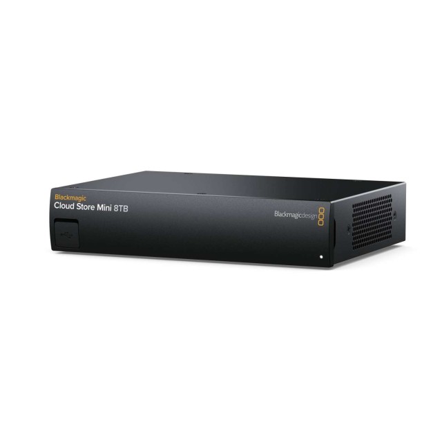 El modelo Blackmagic Cloud Store Mini está disponible en una versión con 8 TB de memoria flash, lo que proporciona suficiente espacio de almacenamiento para los formatos de vídeo modernos utilizados en la producción televisiva, manteniendo unas dimensiones reducidas. Los soportes de memoria flash M.2 garantizan fiabilidad, alta velocidad de lectura y escritura, y un tiempo de acceso mínimo. La potente electrónica interna y las tarjetas flash organizadas en una matriz RAID 0 garantizan un aprovechamiento óptimo de la interfaz Ethernet de 10G para alcanzar las velocidades de transferencia máximas necesarias en el procesamiento de material procedente de cámaras de cine digitales o en producciones multicámara. A pesar de su alto rendimiento, el sistema de refrigeración activa sigue siendo muy silencioso.