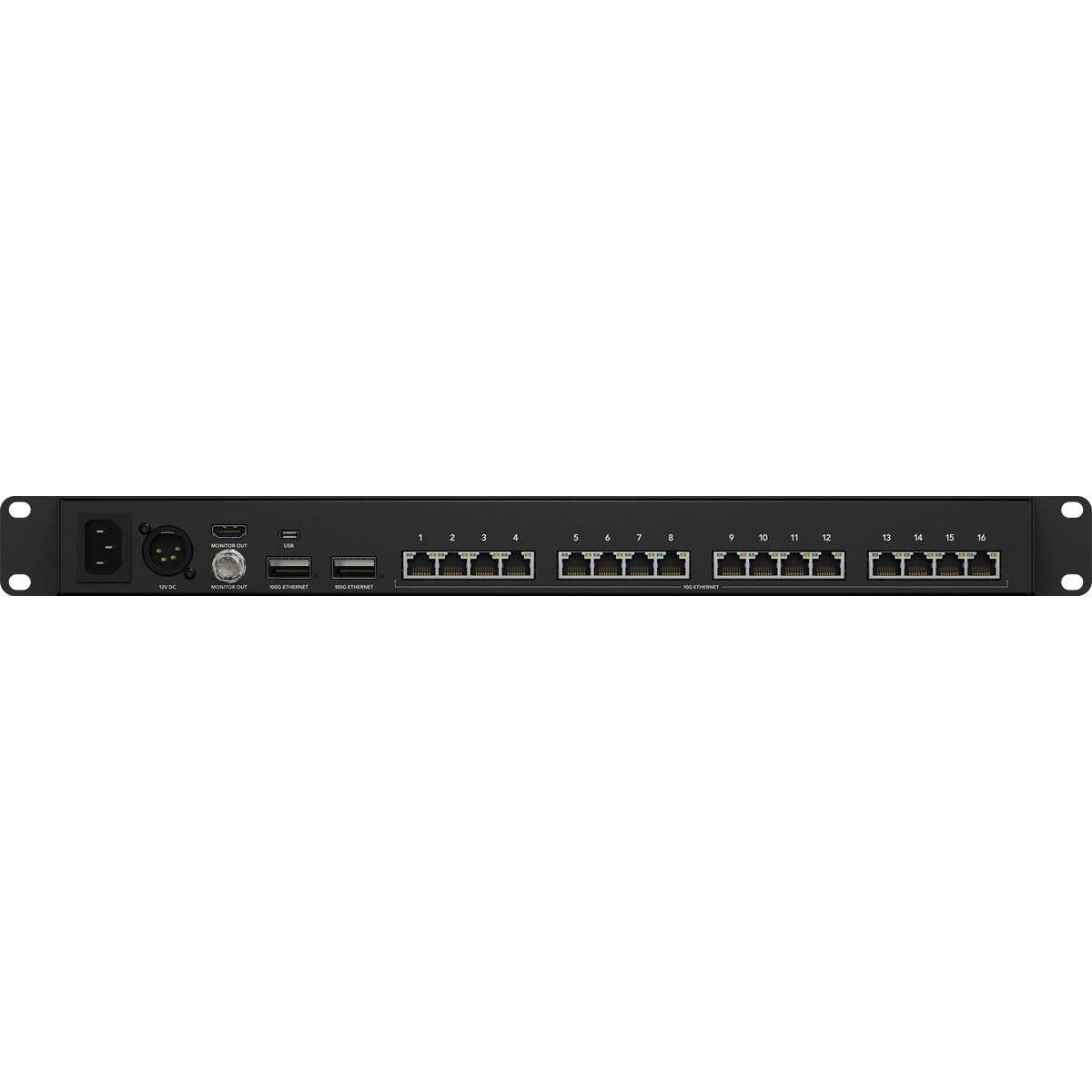 ¡El Blackmagic Ethernet Switch 360P ha sido diseñado específicamente para la industria televisiva! Esto significa que todas las conexiones de red se encuentran en la parte trasera, es decir, en el mismo lado que los puertos de red de los equipos de emisión de los clientes. ¡Esto hace que conectar los cables de red sea muy sencillo! Cuenta con 16 puertos Ethernet de 10G totalmente independientes que utilizan conectores RJ-45 estándar. Dado que el Blackmagic Ethernet Switch 360P está diseñado para la industria de la televisión y el cine, las conexiones Ethernet se encuentran en la parte trasera, lo que facilita la gestión de los cables, y cada conector dispone de espacio a su alrededor para desconectar los cables cómodamente. Gracias a la gran cantidad de puertos de 10G, los usuarios pueden crear matrices extremadamente grandes de grabadoras HyperDeck ISO. A continuación, pueden conectar numerosas estaciones de trabajo DaVinci Resolve para editores y coloristas.