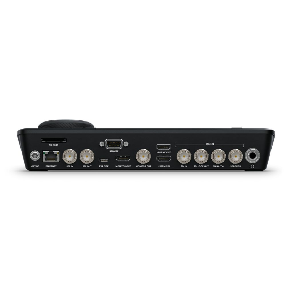 La conexión a través de 12G-SDI permite conectarse a equipos de transmisión profesionales. Admite la grabación y reproducción de archivos4K, el trabajo conproxies HD, la visualización de osciloscopios, 3D LUT y la grabación en red a través de una rápida conexión Ethernet de 10G.