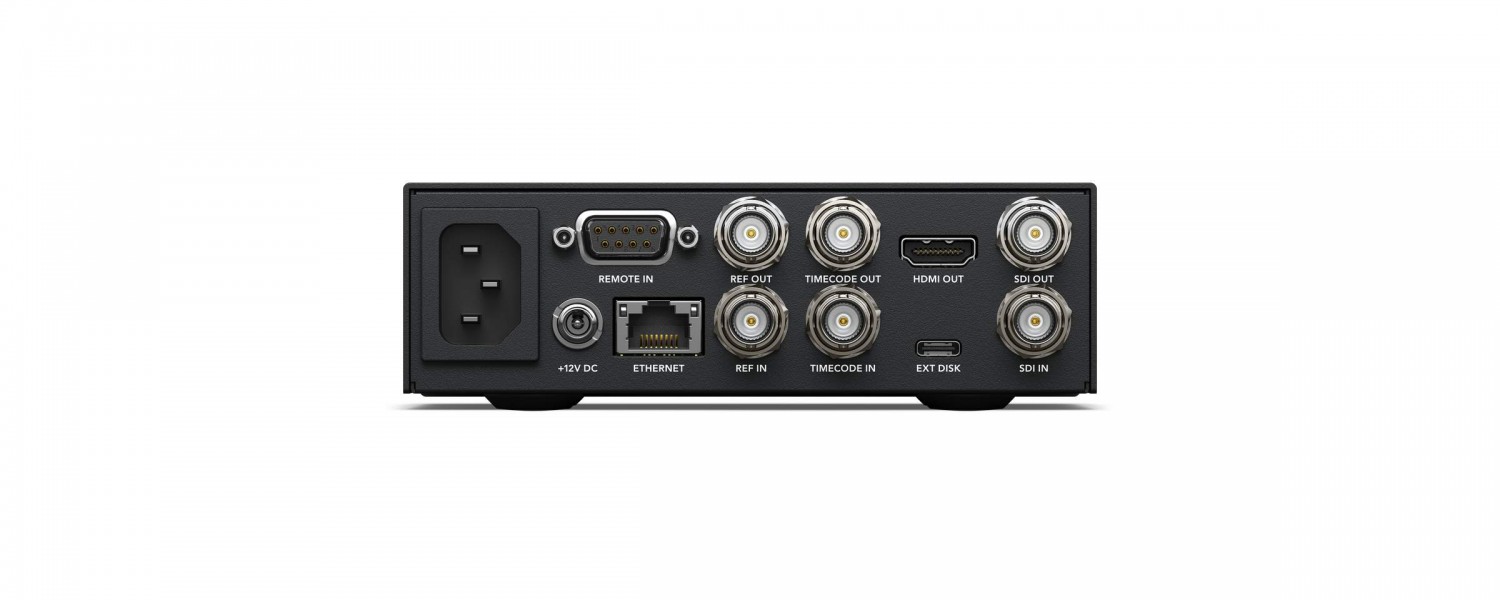 Esta grabadora de vídeo profesional en miniatura graba vídeo SD/HD (hasta 1080p60) en formatos H.264, ProRes o DNxHD en tarjetas SD/UHS-II y discos USB externos. Cuenta con entradas y salidas 3G-SDI, salida HDMI y generadores de código de tiempo y señal de referencia.