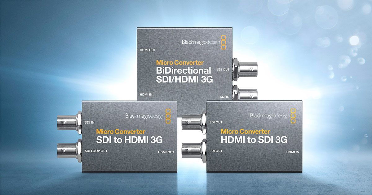 ¡Blackmagic Design ha presentado la nueva generación de convertidores Micro Converter! Los nuevos modelos con la denominación «3G» ofrecen una interfaz 3G-SDI con amplia compatibilidad con formatos SD y HD de hasta 1080p60, corrección 3D LUT en la variante Micro Converter SDI a HDMI 3G o la posibilidad de transmisión bidireccional de datos para el control de cámaras desde las mesas de mezcla ATEM en el modelo Micro Converter BiDirectional SDI/HDMI 3G. Por supuesto, se mantienen las dimensiones compactas, la posibilidad de alimentación a través del bus USB, etc.