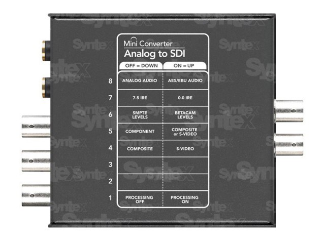 El producto ofrece todas las funciones necesarias para convertir señales analógicas por componentes SD/HD a SDI, incluyendo compatibilidad con los estándares PAL y NTSC, así como soporte para audio AES/EBU simétrico y salida de audio analógica. El Mini Converter SDI to Analog permite conectar cintas Betacam SP o VHS, así como monitores analógicos. También incluye funciones para la conversión descendente de vídeo HD-SDI a SD. ¡Versión SD/HD sin compatibilidad con 4K a un precio especial!