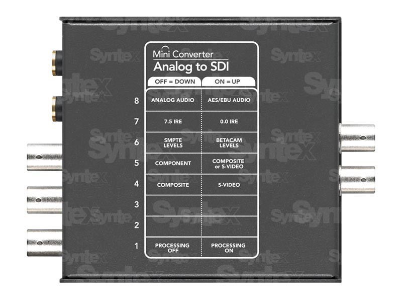 Los estudios de televisión o de posproducción y otros entornos profesionales de A/V se basan en equipos y cableado de tipo SDI. Por eso es muy importante que, al convertir la señal SDI, se mantenga la máxima calidad de imagen y sonido. Los Mini Converters son compactos, económicos y fáciles de usar. Los ajustes se pueden modificar fácilmente mediante interruptores miniatura siguiendo el diagrama situado en el cuerpo del dispositivo o las instrucciones del manual de usuario. Los Mini Converters también utilizan cableado estándar, por lo que puede ahorrar costes utilizando sus propios cables.