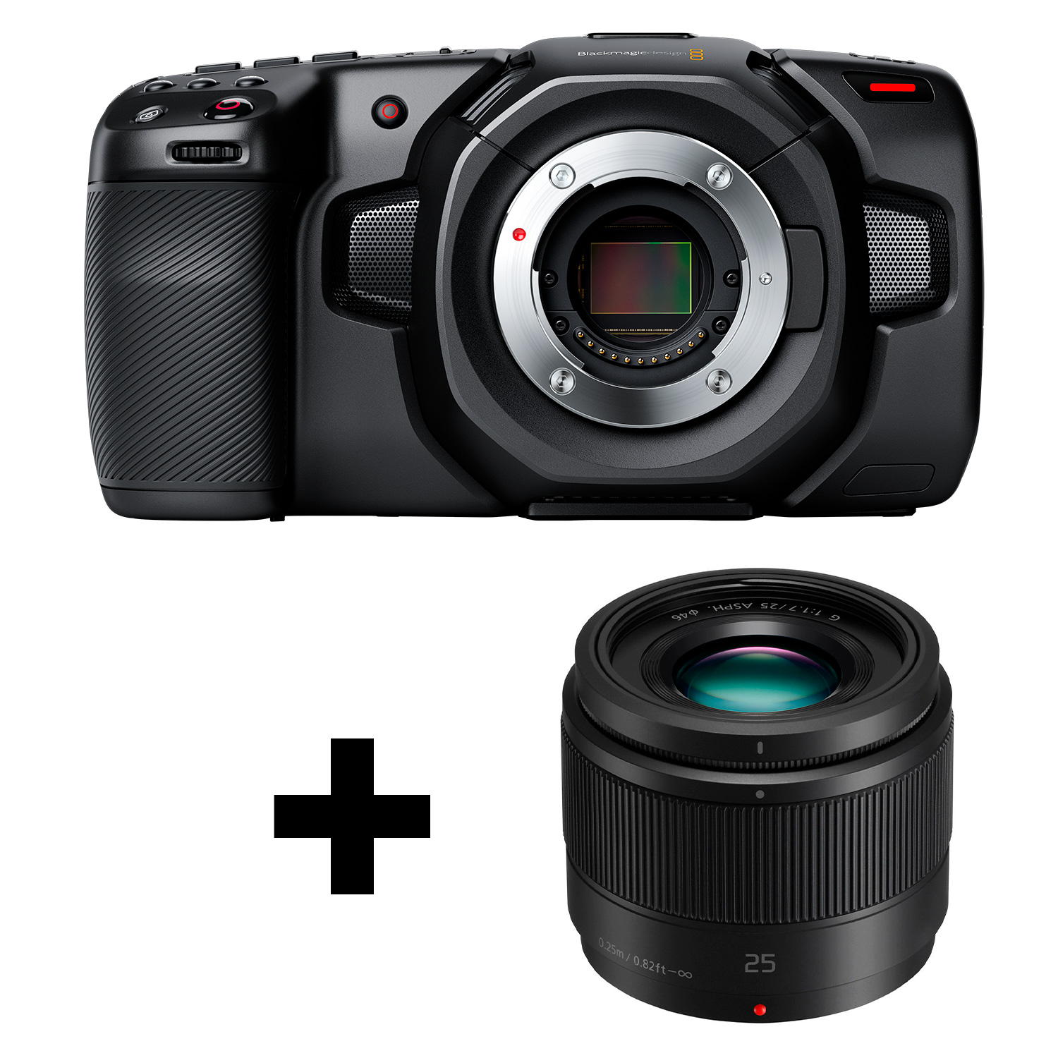 Blackmagic Design Pocket Cinema Camera 4K + Panasonic Lumix G 25mm / f1.7 Asph. Bundle