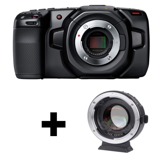 Set a precio especial compuesto por la cámara Blackmagic Design Pocket Cinema Camera 4K y el adaptador «Speed Booster» Viltrox EF-M2 II. El adaptador Viltrox EF-M2 II no solo sirve para adaptar la montura MFT a los objetivos Canon EF, sino que también reduce la distancia focal de los objetivos (0,71x) y aumenta su luminosidad (hasta un paso de diafragma). Además, ofrece una rosca de 1/4" para jaulas de cámara y es compatible con el enfoque automático (AF) en los objetivos Canon.