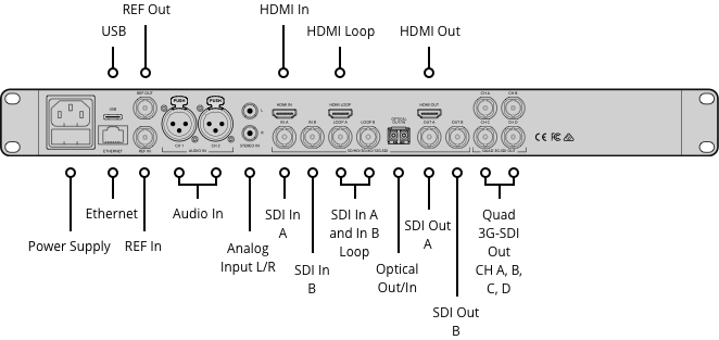 Además de dos entradas de audio balanceadas profesionales y cuatro entradas digitales AES/EBU, el Teranex AV cuenta con una interfaz no balanceada con nivel de línea de consumo. Las entradas estéreo con conectores RCA permiten conectar fácilmente ordenadores o micrófonos de solapa y otros dispositivos con salidas de audio no balanceadas. ¡Gracias a ello, los usuarios pueden insertar flujos de audio en la señal SDI independientemente del formato de audio de entrada!