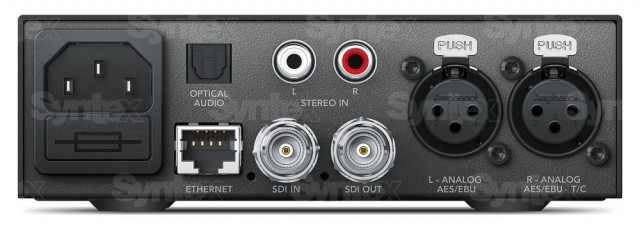 Los productos Teranex Mini están equipados además con conectores XLR estándar para líneas de audio balanceadas, una interfaz digital AES/EBU o para la conexión de fuentes de código de tiempo. Los usuarios pueden utilizar cableado de estudio estándar con un tipo de conector fiable que cuenta con un seguro contra la desconexión accidental del cable. Los circuitos de audio de los convertidores Teranex Mini se han rediseñado por completo para ofrecer un nivel de ruido extremadamente bajo (más de -115 dBFS) y la máxima calidad de sonido.