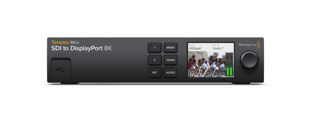 El Teranex Mini SDI to DisplayPort 8K HDR es una solución avanzada para la visualización de vídeo 8K mediante monitores de ordenador con interfaz DisplayPort, como el nuevo monitor Pro Display XDR. A diferencia de los convertidores habituales, este producto es capaz de utilizar sondas de calibración de otros fabricantes y también de mostrar la salida de funciones para la medición de la señal, incluyendo la forma de onda, el histograma o el vectorscopio. Se trata de una solución ideal para estudios de cine o centros de televisión que requieren soluciones profesionales, pero asequibles, para la visualización de vídeo. Otra ventaja es su elegante diseño, que incluye una pantalla LCD para la visualización de la señal y la configuración sencilla del dispositivo.