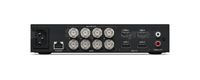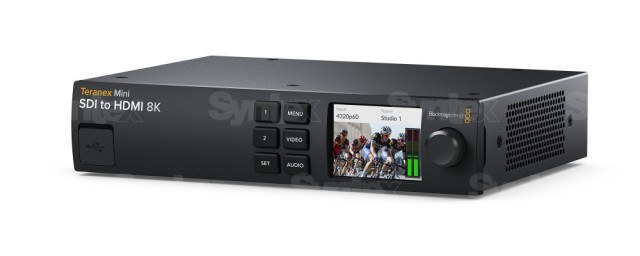 La pantalla LCD del panel frontal muestra no solo la vista previa del vídeo, sino también medidores de audio con balística VU o PPM, así como el formato de entrada; el panel trasero alberga una interfaz Quad-Link 12G-SDI para admitir resoluciones HD, Ultra HD y 8K. Tampoco faltan 4 salidas HDMI para televisores y proyectores 8K con entradas Quad-HDMI y, por supuesto, funciones para la conversión descendente de vídeo 8K a resoluciones Ultra HD o HD, así como la conversión automática entre los formatos 2SI (2-Sample Interleave) y Square Division. El modelo Teranex Mini SDI to HDMI 8K ofrece compatibilidad con los últimos estándares HDR, incluidos los formatos PQ y Hybrid Log Gamma (HLG) según las normas ST2108-1, ST2084 y ST425; por supuesto, es compatible con los espacios de color Rec.2020 y Rec.709, así como con el formato DCI-P3. A la venta desde mayo de 2019.