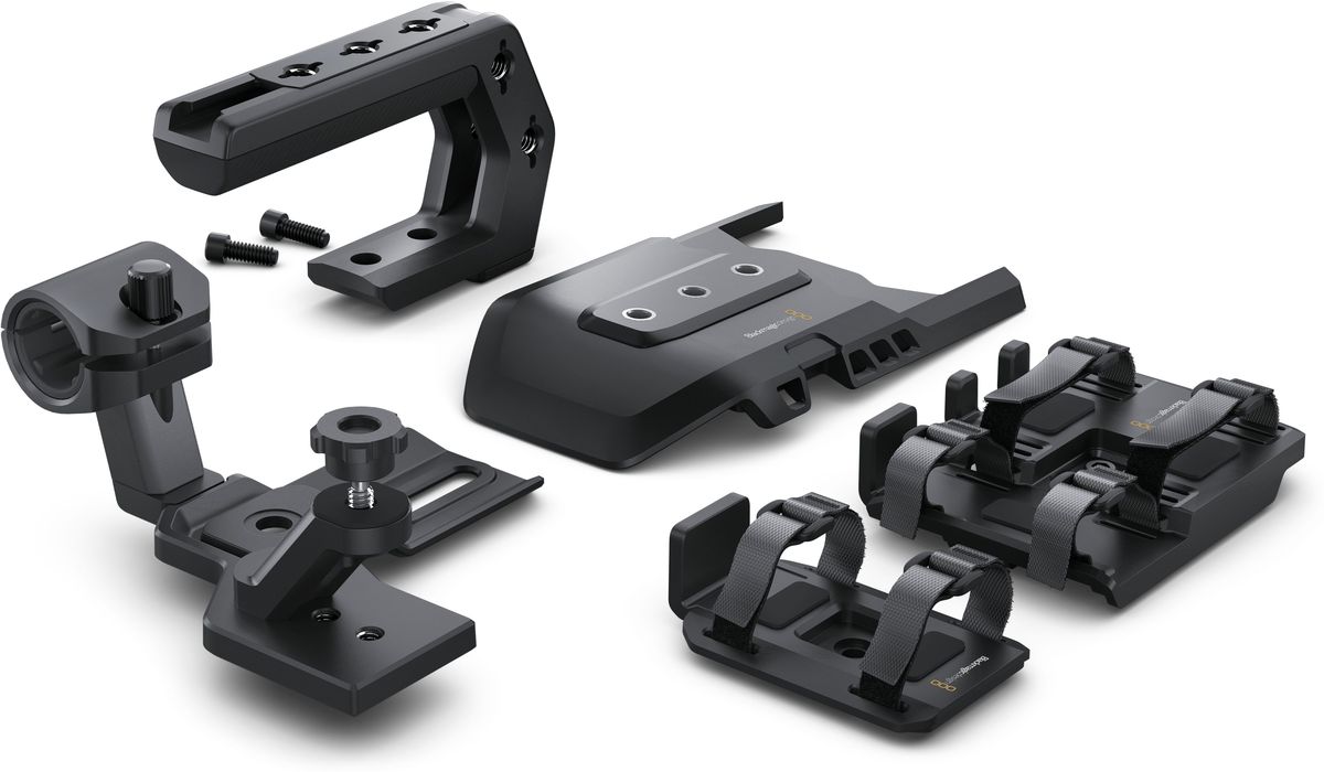 ¡Convierte la URSA Broadcast en la cámara de noticias perfecta para grabar a mano alzada! El kit incluye una empuñadura superior con roscas de montaje de 3/8", tapas protectoras para el cuerpo de la cámara, un soporte para micrófono y luz, y un soporte lateral para otros accesorios.