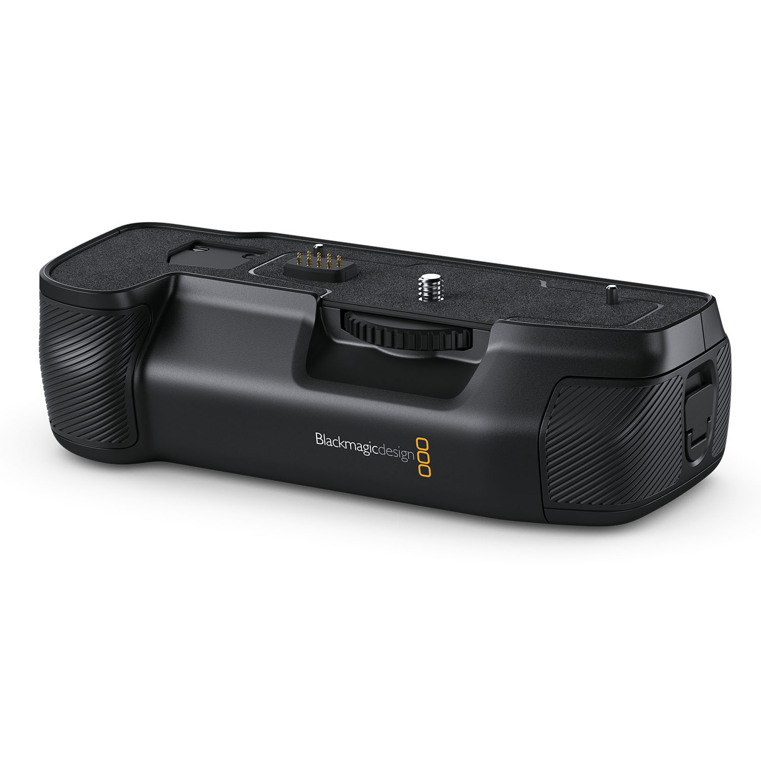 La empuñadura con batería para la Blackmagic Pocket Cinema Camera 6K Pro y 6K G2 permite sustituir la batería interna por dos baterías NP-F570, lo que proporciona una autonomía de más de tres horas de grabación.