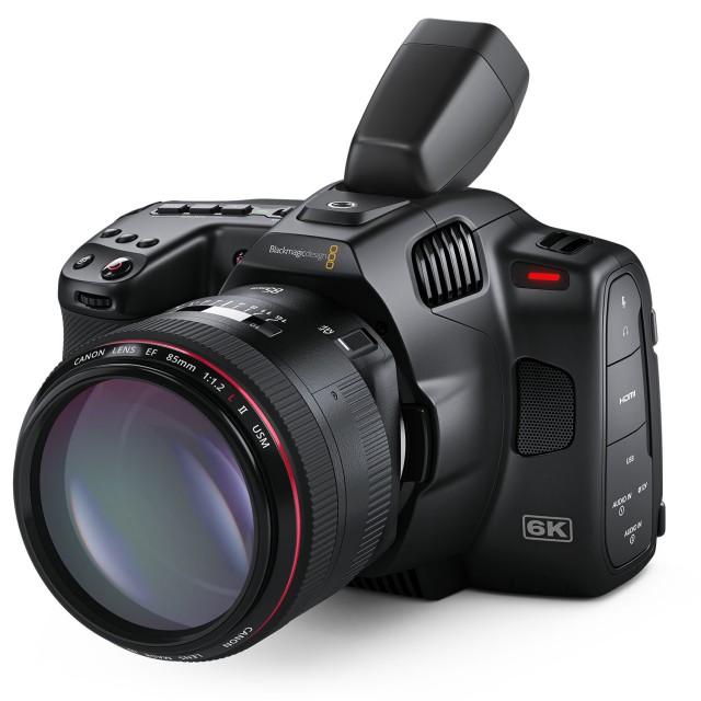 Visor externo opcional para la Pocket Cinema Camera 6K Pro y 6K G2 con una pantalla OLED de alta calidad con una resolución de 1280 x 960, óptica de cristal compuesta por cuatro lentes para la corrección dióptrica en un rango de -4 a +4 y un sensor de visión en el visor. Por supuesto, muestra información importante sobre el estado de la cámara (enfoque, guías, etc.). El visor Pocket Cinema Camera Pro EVF se conecta mediante un conector integrado, es orientable en un rango de 70° y se suministra con tres oculares diferentes para el ojo izquierdo y el derecho.