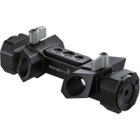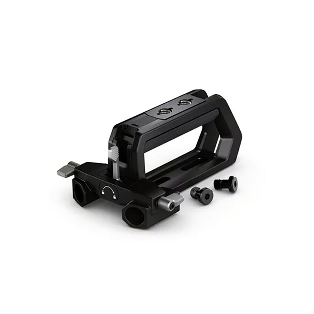 Empuñadura resistente con soporte superior que permite transportar con seguridad la cámara Blackmagic PYXIS 6K y acoplar el visor electrónico URSA Cine. Las roscas de montaje estándar de 1/4"-20 permiten añadir accesorios al conjunto.