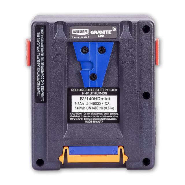 Batería compacta Blueshape BV140HDMINI con una capacidad de 143 Wh y 2 conectores D. Apta para cámaras RED.