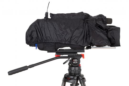 La funda camCover se fija fácilmente alrededor del cuerpo de la cámara mediante velcro, dejando un acceso rápido y sencillo a sus controles, ranuras para tarjetas de memoria, conectores, visor, objetivo y batería. En la parte superior de la cámara, debajo de la empuñadura superior, se puede utilizar un trozo de tela enrollado para proteger la unidad de ventilación.