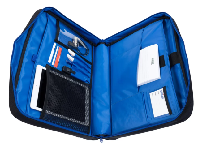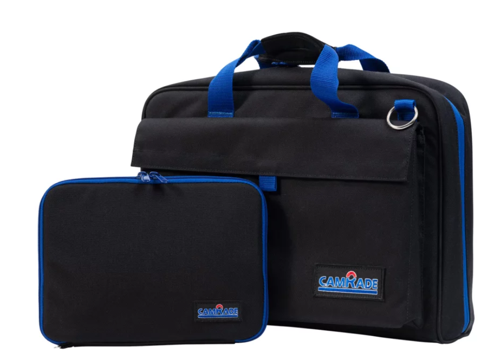 CamRade ComPanion es una maleta profesional diseñada para que tu equipo básico de producción esté seguro, bien organizado y sea fácilmente accesible. La maleta está fabricada con resistente tejido Cordura® negro de 1000 deniers con propiedades impermeables y, gracias a su estructura acolchada y a las cremalleras YKK® de alta calidad, ofrece la máxima protección. En el interior hay un forro de nailon azul suave y acolchado con varios bolsillos prácticos y bolsillos de malla para herramientas, documentos y objetos pequeños, mientras que un gran compartimento acolchado con cierre de velcro elástico sujeta de forma segura su ordenador portátil. Un compartimento especial para tableta mejora aún más la organización. ComPanion está diseñado para viajeros frecuentes e incluye un bolsillo trasero con cremallera que se puede deslizar fácilmente sobre el asa de la maleta, asas acolchadas de ante y una correa para el hombro extraíble y ajustable para una comodidad óptima al transportarla. Las dimensiones homologadas para el transporte aéreo garantizan un transporte sin problemas en la cabina de los aviones comerciales. Ya sea que estés en un rodaje, en una reunión o de viaje, el camRade comPanion protege tu equipo, lo mantiene bien organizado y listo para la acción.