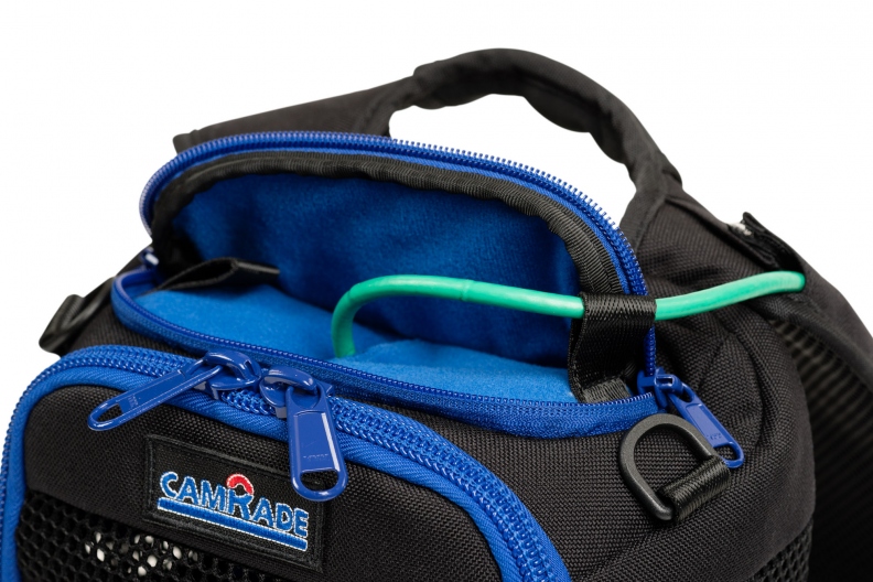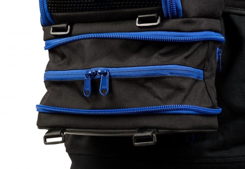 En la parte inferior de la bolsa se ha añadido un compartimento especial —que se puede ampliar hasta 10 cm— para una batería y/o cables y accesorios. En un compartimento cerrado con cremallera encontrarás la funda para la lluvia y la funda reflectante incorporadas.