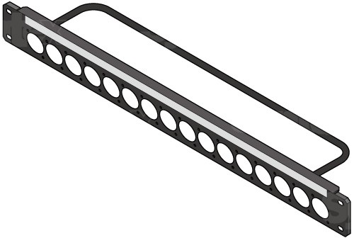 El Canare 1U-AS3es un panel de 1U con 16 orificios del tipo «ITT XLR F77» en fila.