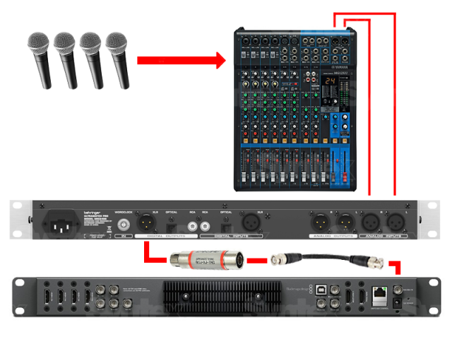 El Canare BCJ-XJ-TRCes un transformador de audio digital de impedancia que convierte de forma pasiva todas las señales de audio digitales estándarAES/EBUde 110 Ω / XLR3 a 75 Ω de cable coaxialBNC. Esta solución es ideal para su uso en posproducción, DAT y estudios de grabación. La ventaja es la posibilidad de utilizar tramos de cable más largos en comparación con el par trenzado de 110 Ω y, además, proporciona una excelente protección contra el zumbido y el ruido.