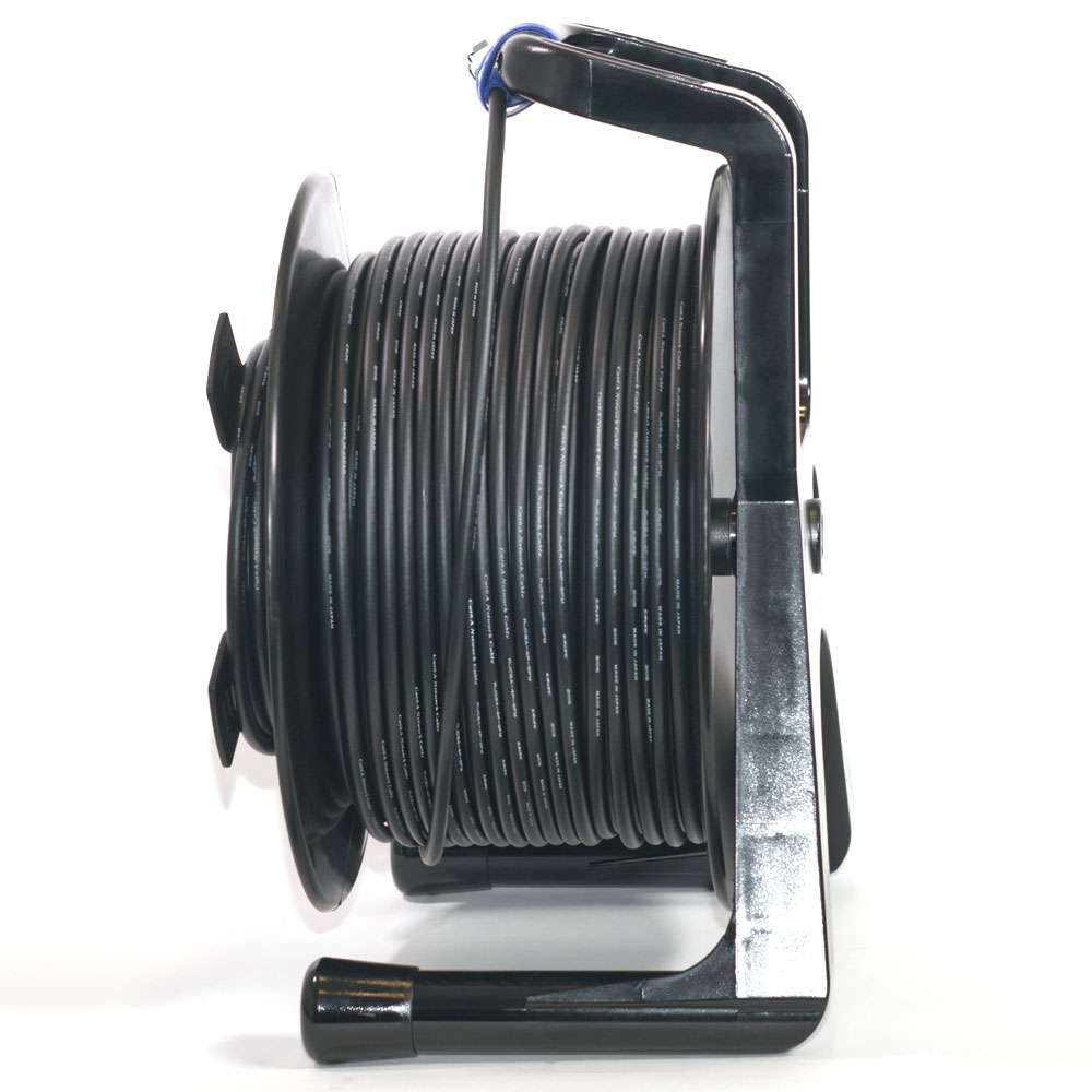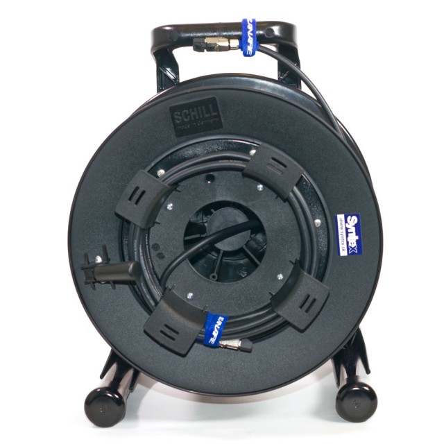Cable flexible CAT6A STP de 23 AWG con un diámetro exterior de 8,6 mm y conectores Telegartner RJ45, enrollado en un carrete Schill GT 380.RM. Los cables Ethernet se utilizan no solo para redes informáticas, sino también, últimamente, para redes de audio digital, cámaras en red y transmisiones HDBaseT. La longitud total del cable se indica incluyendo los conectores.
