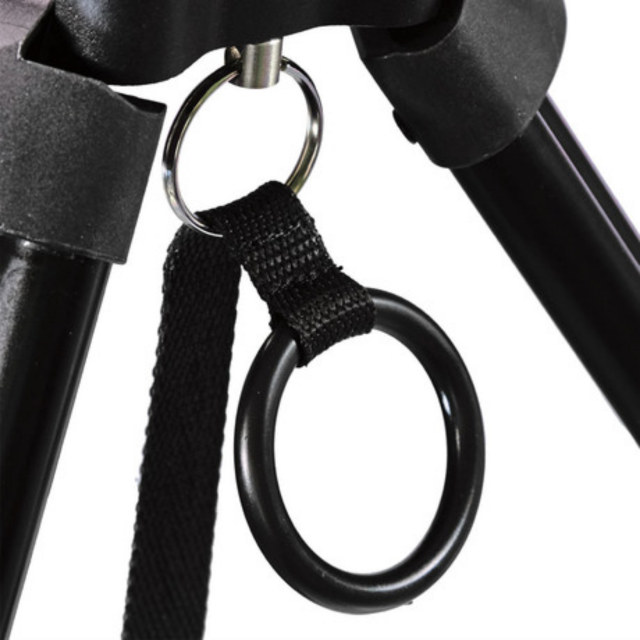 El espaciador es compatible con cualquier trípode CARTONI DV y ENG con gancho de fijación rápida. Una práctica correa fijada al anillo central del espaciador y a la base del trípode agiliza el plegado del sistema con un solo movimiento.